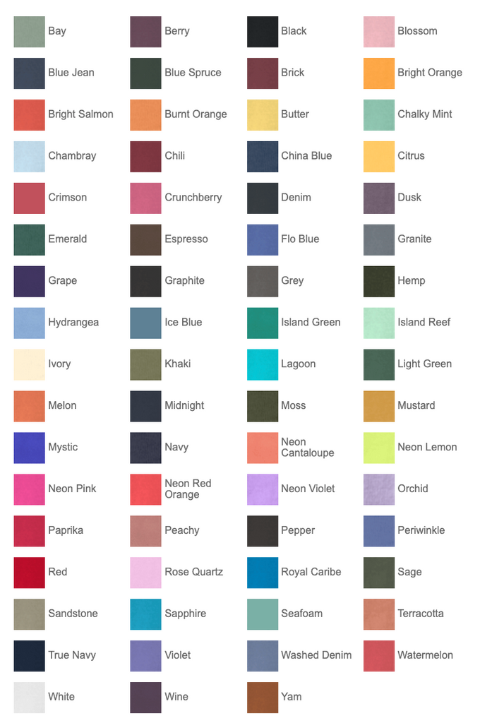 The garment-dying process infuses each garment with unique character. Please allow for slight color variation in production and washing. Special consideration must also be taken when printing white ink on garment-dyed cotton.